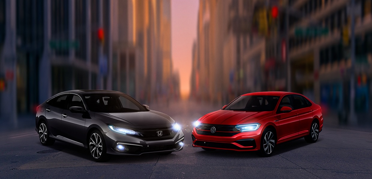 Honda Civic Touring e Volkswagen Jetta GLI têm freio de estacionamento automático, som de alta potência, navegação nativa, chave presencial, sensores de chuva e crepuscular, ar-condicionado digital, conectividade com Android Auto e Apple CarPlay, câmera de ré, seis airbags, entre outros.