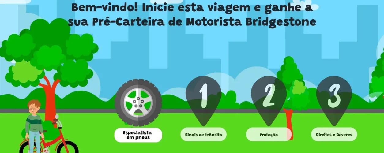 De olho na conscientização de crianças sobre a segurança no trânsito, a Bridgestone colocou no ar a plataforma virtual de ensino "Pense Antes de Dirigir Kids", voltada para usuários com idades entre 6 e 12 anos.