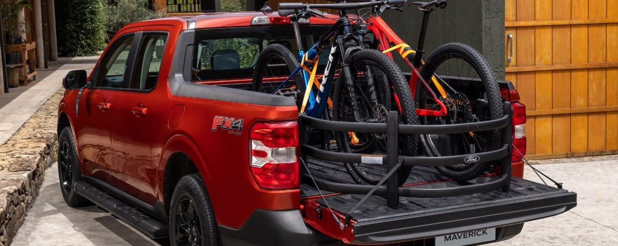 Para transportar bicicletas na caçamba sem necessidade de desmontá-las, a Ford tem os Truckpads da Nomad Sports. A Maverick pode ser equipada ainda com caixas organizadoras para caçamba. Disponíveis para os lados direito e esquerdo, cada uma delas tem capacidade para 42 litros e chave antifurto.