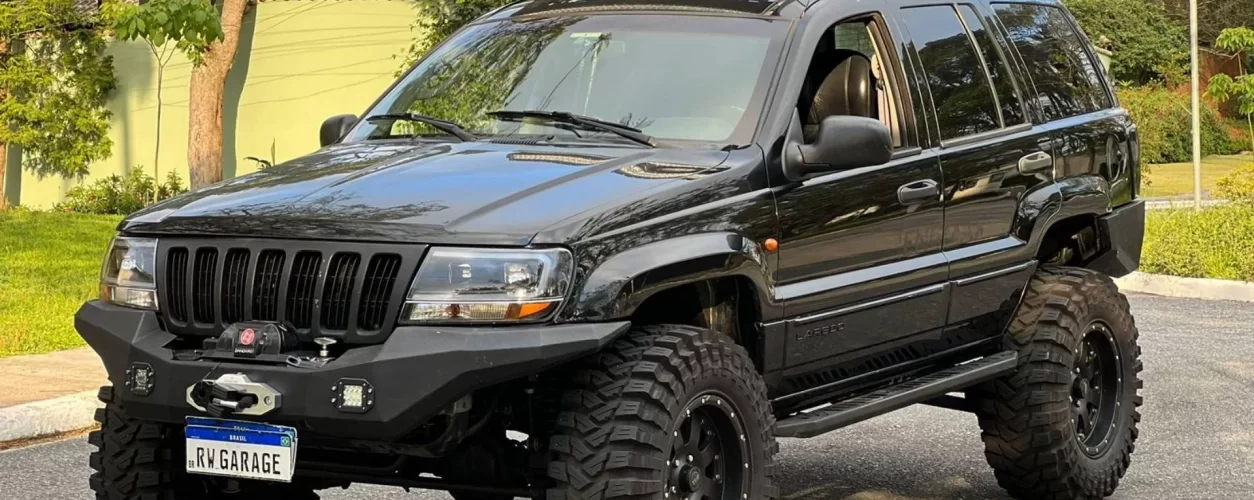 Depois de tantas opções racionais e comuns (ok, menos o Suburban...), chegou a hora de trazer algo mais radical. Como um Jeep Grand Cherokee 2002 equipado para enfrentar os piores caminhos.