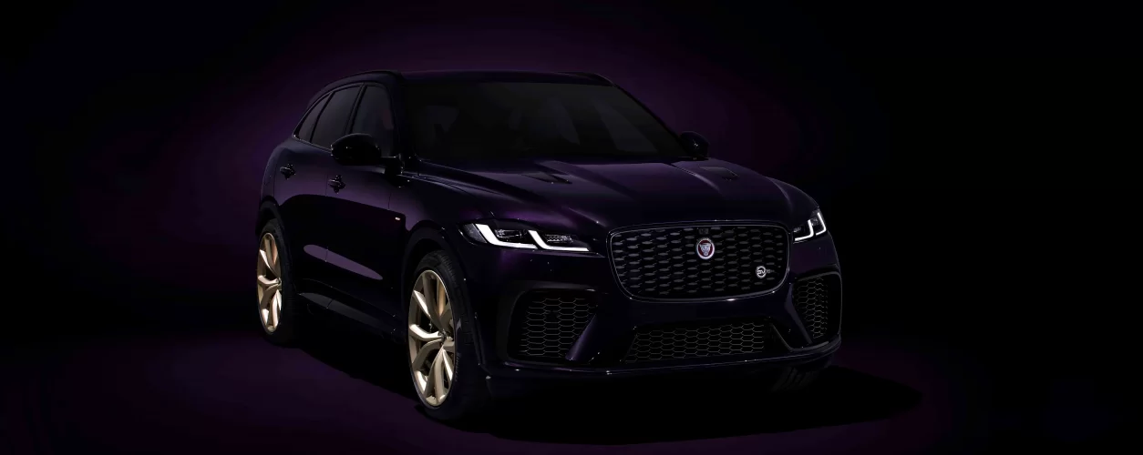 Por dentro, o Jaguar F-Pace SVR Edition 1988 tem elementos em fibra de carbono e estofados na cor Ebony, além de acabamentos exclusivos na cor Sunset Gold no painel de instrumentos, nos raios do volante e na manopla de câmbio. As soleiras das portas e o anel de buzina recebem acabamento em Satin Black.
