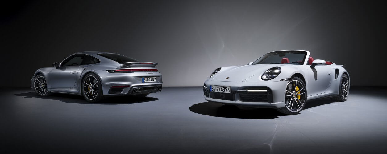 A nova geração da versão topo de linha do 911 estreia nas versões Coupé e Cabriolet, ambas movidas por um novo motor boxer (de seis cilindros contrapostos) com 3,8 litros e dois turbocompressores com geometria variável, que entrega impressionantes 650 cavalos - 70 cv a mais do que seu antecessor - e 81,6 kgf.m de torque (aumento de 5,1 kgf.m).