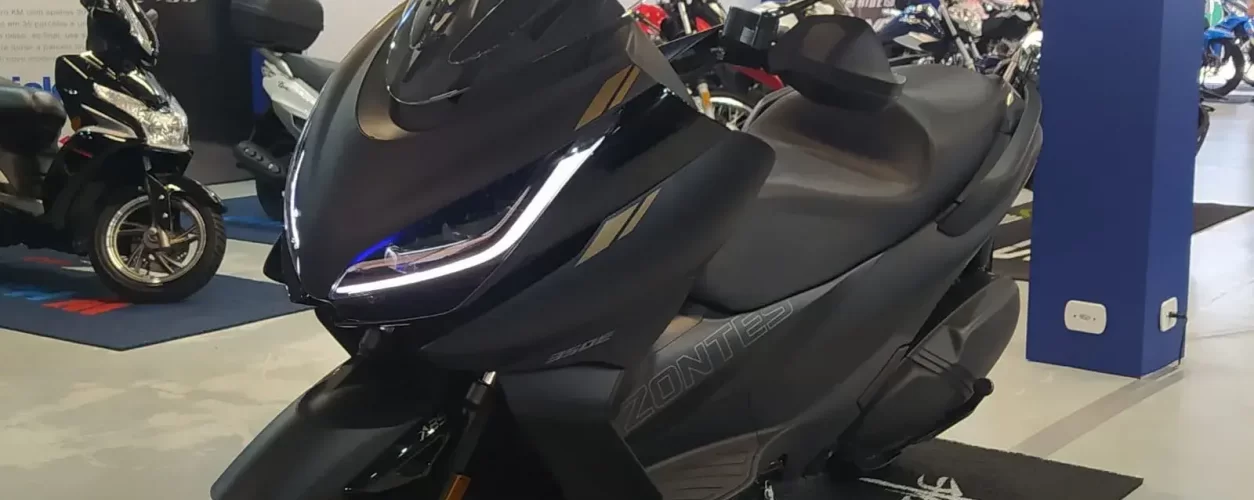 A Zontes apresenta na tarde desta quinta-feira (22) no Festival Interlagos o scooter 350 E. O modelo tem motor monocilíndrico refrigerado a água, com 350cm3 e 36,7 cv.