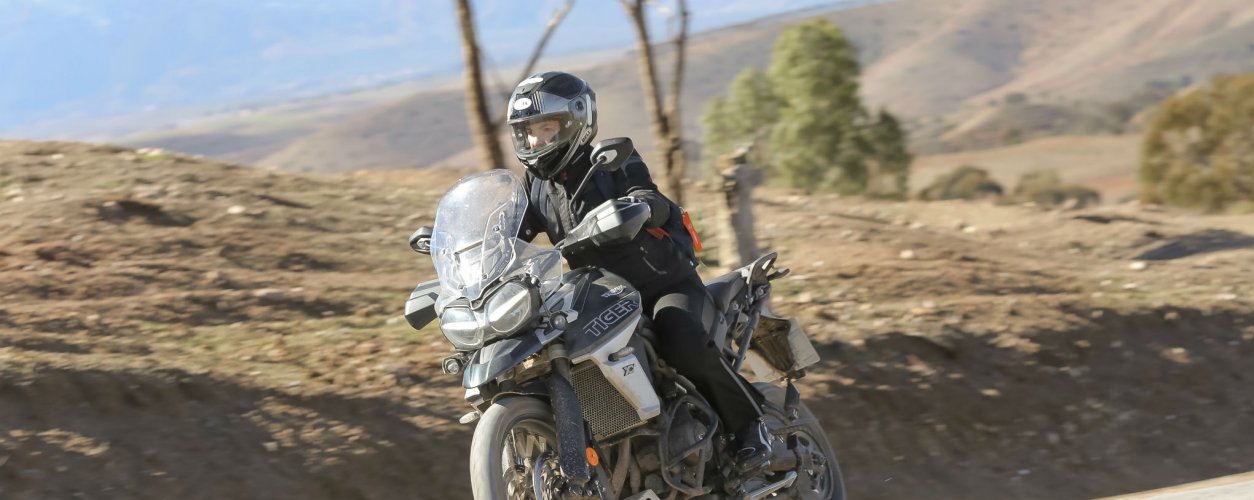 Estive na apresentação da nova Tiger, no Salão de Motos de Milão, mas não imaginei que meu primeiro contato com ela seria aos pés da Cordilheira do Atlas, cadeia de montanhas localizada no noroeste do continente africano. As estradas sinuosas, o pavimento esburacado, penhascos, por trechos de terra e neve saciariam perfeitamente o apetite desta aventureira. Cruzávamos com frequencia com caminhões, rebanhos de ovelhas e crianças - que nos cumprimentavam batidas de mão ou jogavam bolas de neve. Em suma, Marrocos tem terrenos perfeitos para uma moto projetada para viagens imperfeitas.