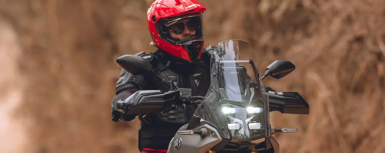 Ou seja, tem uma forte pegada trail, linhas agressivas e imponentes e transmite aquela sensação de que topa tudo. A frente com "cara chata" tem conjunto óptico com LEDs, dois projetores para luz baixa e dois para luz alta, e luzes de rodagem diurnas. Logo acima, a moto tem para-brisa com cerca de 30 cm de altura, e atrás dele surge um bonito painel de instrumentos com tela vertical de TFT tipo tablet.