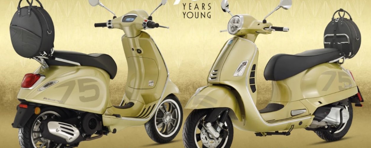 Enquanto isso, na Itália, a Piaggio lançou a série especial "Vespa 75" para comemorar os aniversário do ícone. Serão versões para os modelos Primavera e GTS, para vendas na Europa e nos Estados Unidos. Terão a cor "Giallo 75th", um amarelo metálico quase dourado, logotipos com o número 75 nas laterais, banco em nobuck, rodas pintadas na cor cinza e alguns detalhes cromados.
