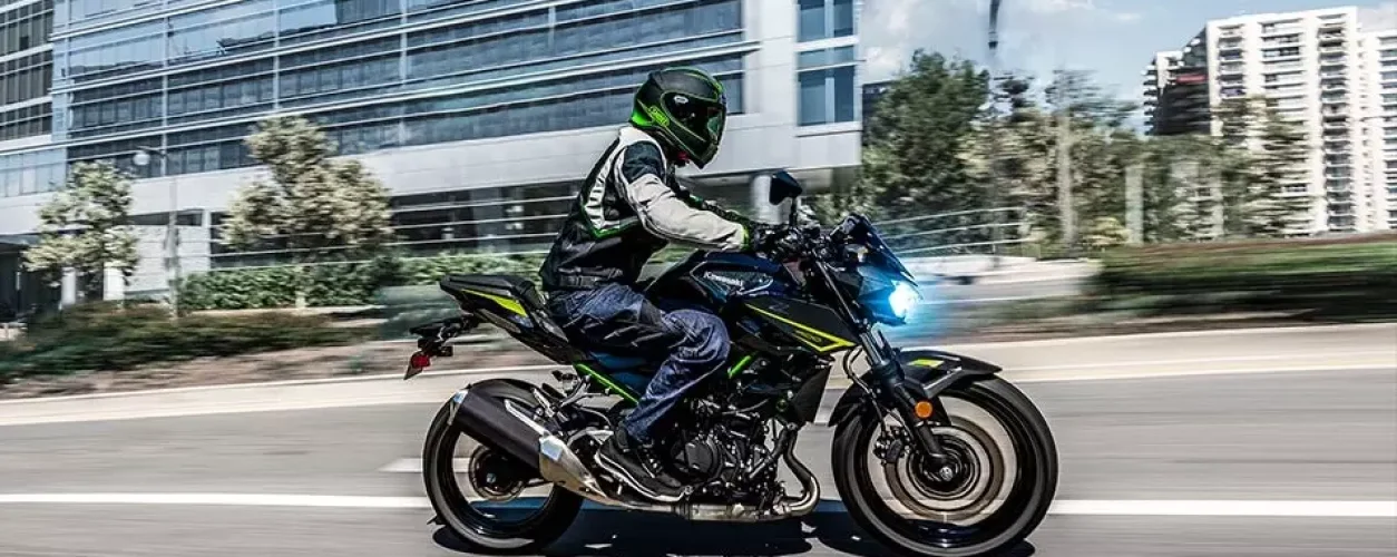 A Kawasaki Z400 é uma típica naked moderna. Tem design agressivo, com motor exposto, moldura no farol dianteiro - que parece uma cara invocada -, tanque alto para bons 14 litros e peso coerente, de 167 quilos em ordem de marcha.