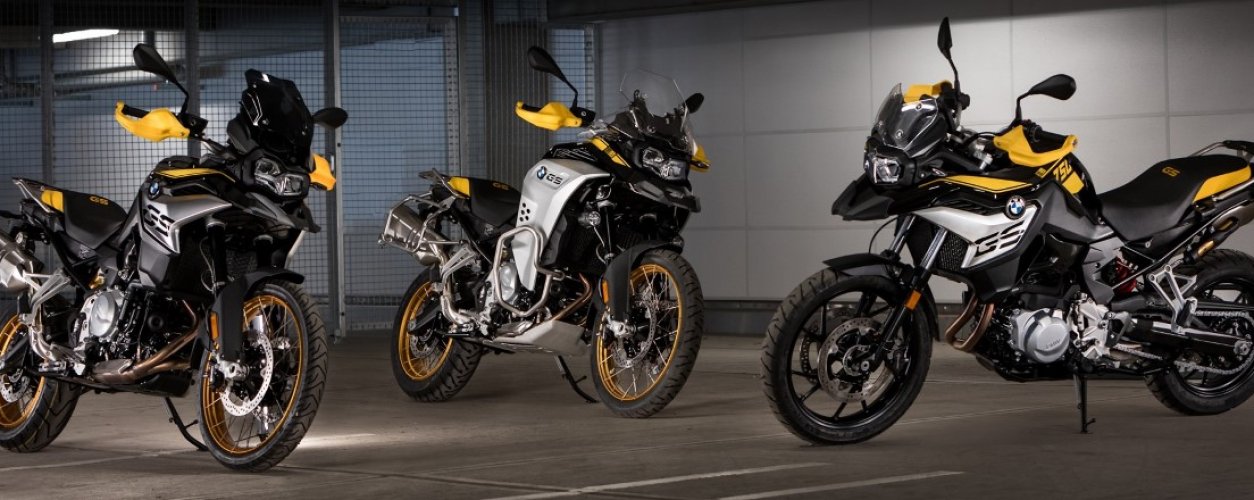 A BMW já começou a vender no Brasil os modelos que comemoram os 40 anos de estrada da linha GS - iniciados com a lendária R 100 GS. Batizada de "40 Years GS", a linha é composta por versões dos modelos F 750 GS, F 850 GS e R 1.250 GS. Todas têm o mesmo visual das configurações normais, porém vêm pintadas nas cores amarela e preta do modelo original e, claro, são equipadas com tecnologias modernas.