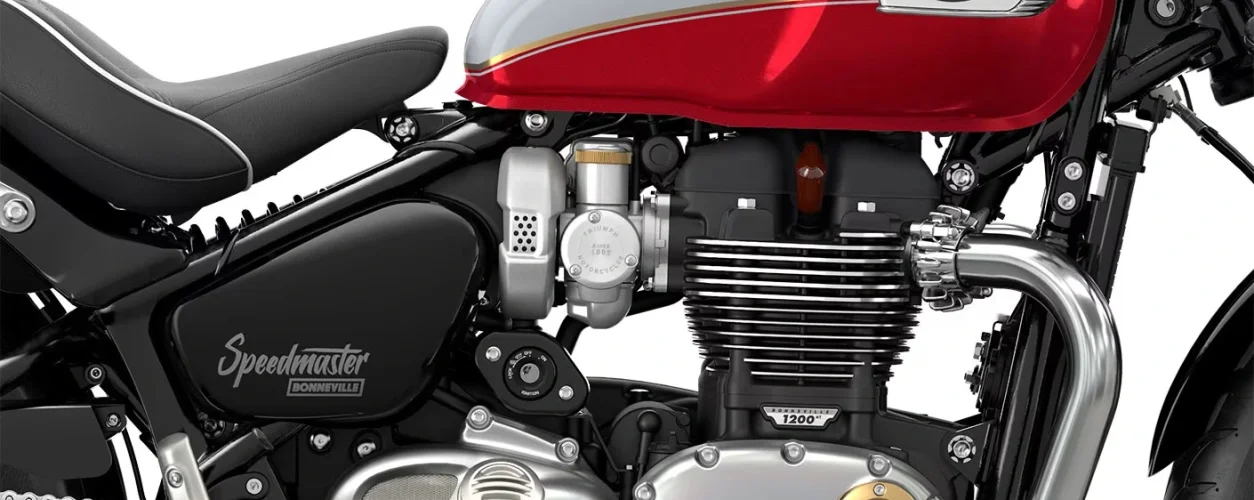 Pois é. A Triumph Bonneville Speedmaster é uma 1200. O motor também é bicilíndrico, mas com sua capacidade cúbica bem maior, refrigeração líquida - que implica em eficiência térmica superior - oito válvulas e comando simples, entrega 78 cv de potência a 6.100 rpm com 10,6 kgfm de torque a 4.000 rpm.