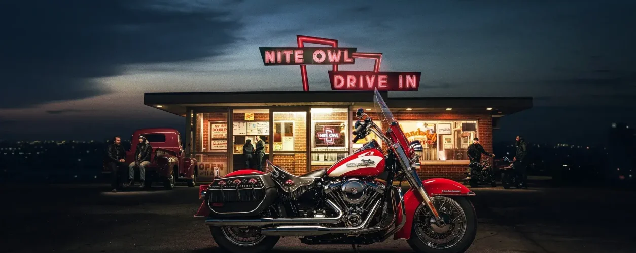 As linhas básicas são da Heritage Classic dos anos 2000, com seus para-lamas fechados tipo capacete, para-brisa e faróis auxiliares. Mas a moto se diferencia pelo banco solo tipo sela e pelos alforges que remetem aos usados na versão Softail Heritage Old Boy do anos 1980.