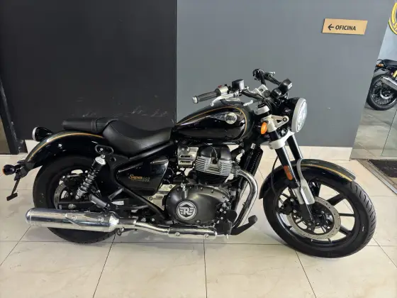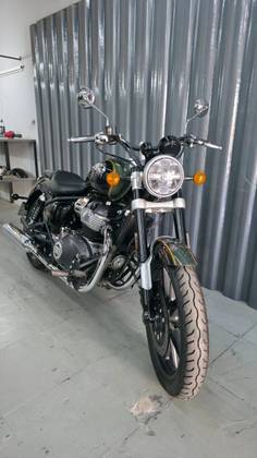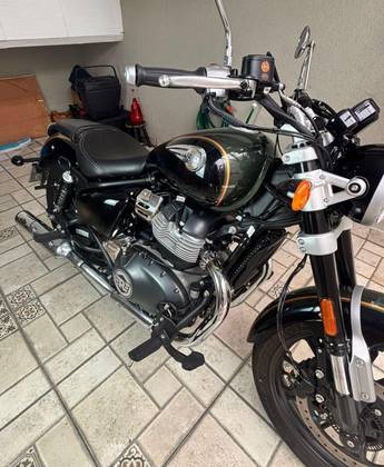 As diferenças começam no design. É uma naked - ou roadster, como a Royal Enfield a classifica -, e por isso o visual não tem qualquer detalhe retrô. A moto exibe tanque chato na parte superior e largo nas laterais, guidão em altura convencional, farol redondo, piscas pequenos e lanterna traseira embutida nos piscas - tudo com LEDs -, além de suporte de placa destacado, como em motos esportivas.