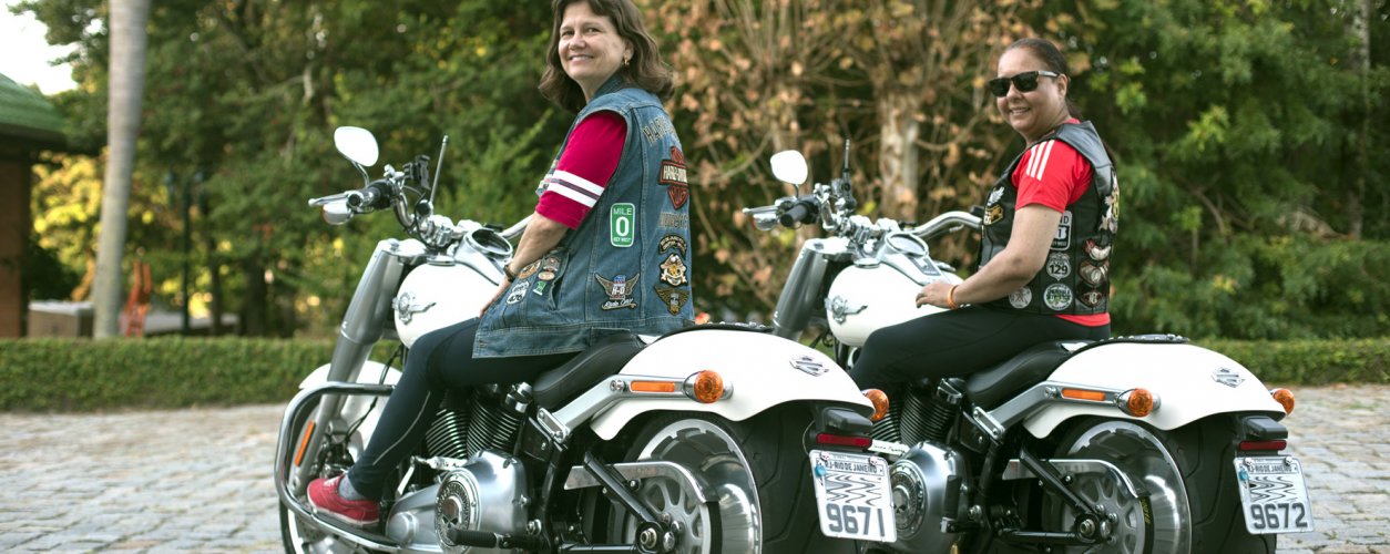 Entre as centenas de motos Harley-Davidson que estiveram no feriado de primeiro de maio em Balneário Camboriú (SC), participando do encontro Nacional do H.O.G., grupo dos proprietários da marca, duas Fat Boy chamavam atenção. Brancas e reluzentes as motos ostentavam o símbolo da Harley, cravejado em pedras, no paralama dianteiro. Pareciam típicas “motos de garagem”, aquelas que rodam pouco e apenas desfilam. Mas a realidade é bem diferente, as motos pertencem as mulheres que mais viajaram no HOG do Brasil.
