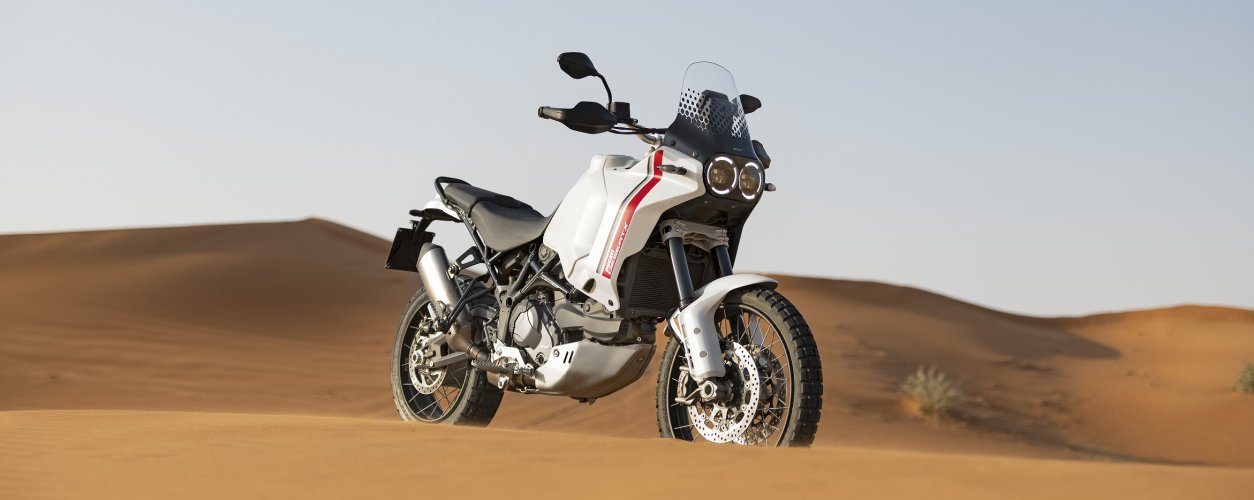 A DesertX é outra conversa. Eis aqui uma big trail legítima, para encarar qualquer viagem no asfalto como se fosse um passeio no parque, mas que quer mesmo é a adrenalina das estradas menos convidativas, com dunas, montanhas, desertos, vales e afins.