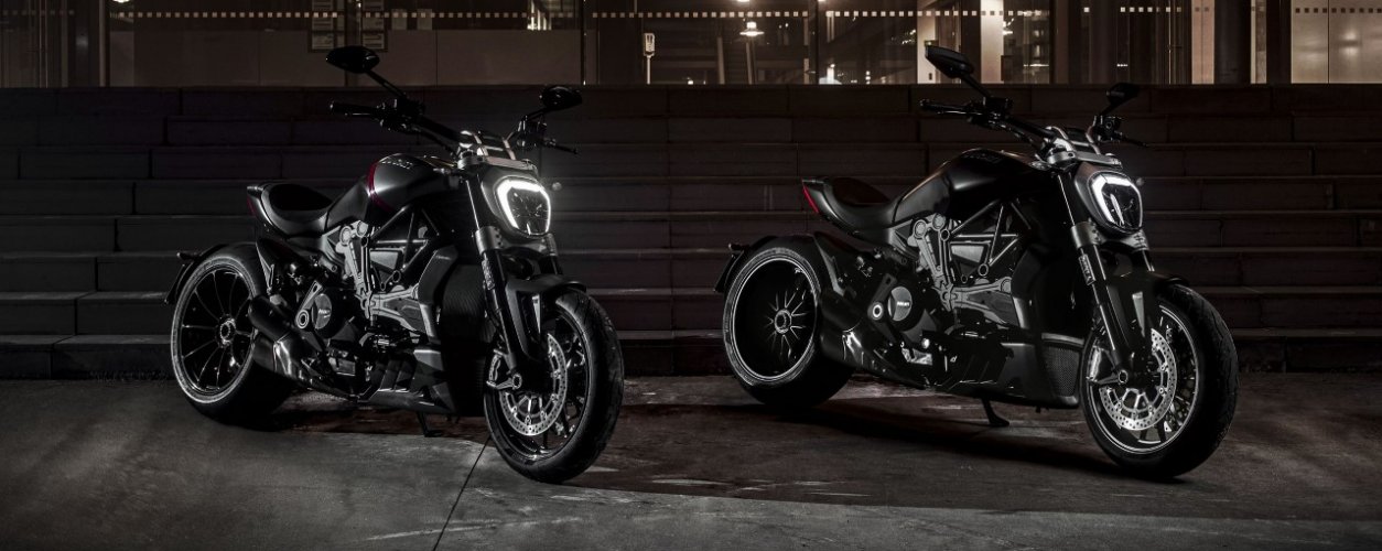 Na linha XDiavel, chegam duas novas versões - Dark e Black Star. A Dark, como entrega o próprio nome, é toda pintada na cor preta fosca. Quadro, motor e rodas são no mesmo tom, e apenas o escape curtinho e os discos de freio "destoam" na cor prata.
