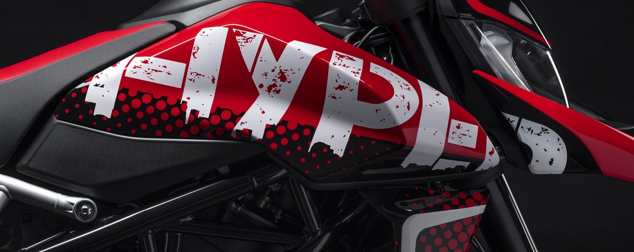 Os designers da marca se inspiraram naquele conceito de 2019 e criaram um visual similar para a linha Hypermtard 950, o que deu origem à configuração RVE - que ficará entre as versões básica e topo de linha SP da moto. A Hypermotard foi a escolhida no line-up da marca por seu visual já extremamente agressivo e exótico, que inclui o escape duplo sob o banco, o icônico quadro treliçado bem aparente e o banco quase reto.