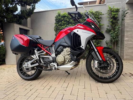 Já a parte eletrônica inclui controles de tração, de freio-motor e antiempinamento, além de quickshifter, controle automático de velocidade, ABS atuante em curvas e quatro modos de condução - sport, road, urban, wet. A seleção é feita no novíssimo painel de TFT de cinco polegadas com modos dia e noite por um pequeno joystick no punho esquerdo, assim como os acessos às funções de conectividade do Ducati Multimedia System, que inclui até navegação curva-a-curva.