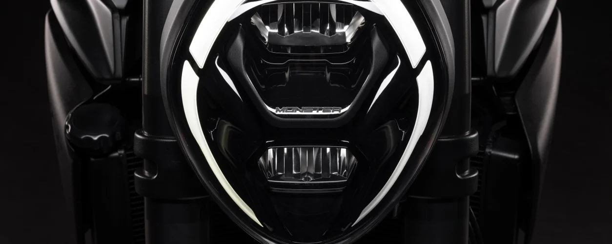 O farol é totalmente em LED, com um visual robótico e moderno que lembra vários elementos estilísticos da linha Ducati. Tem formato em duplo "C" e dois "cortes" laterais que lembram a frente da Panigale V4.