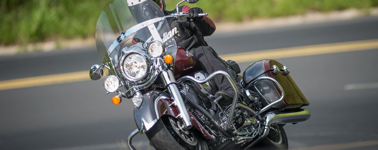 O acabamento de primeira pode ser visto nos assentos em couro, no cuidado em esconder os cabos elétricos dentro do guidão, na iluminação em LED no para-lama dianteiro e no encaixe das peças. Todavia, a melhor parte são os itens de conforto e comodidade, como a chave de presença com partida à distância, abertura remota das malas rígidas laterais e acionamento do alarme. Além disso, a montadora pensou em facilitar a vida do cliente que quer retirar as malas (que levam até 64 litros) e também o para-brisa. Tudo é feito rapidamente com o acionamento de presilhas, sem o uso de ferramentas. Parece brincadeira, mas às vezes acho que algumas fabricantes pensam no melhor jeito de dificultar e não ajudar. Boa, Indian!