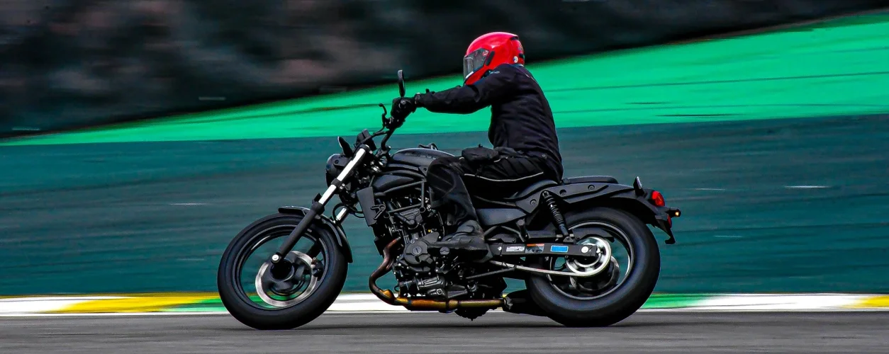 Entro na reta oposta em terceira e acelero progressivamente, subindo as marchas. O motor bicilíndrico de 451 cm³ despeja seus 51 cv de potência e 4,3 kgf.m de torque de forma suave e progressiva, mas não há aquela sensação de motor "cheio" típica das motos custom - ainda mais das movidas por motores V2.