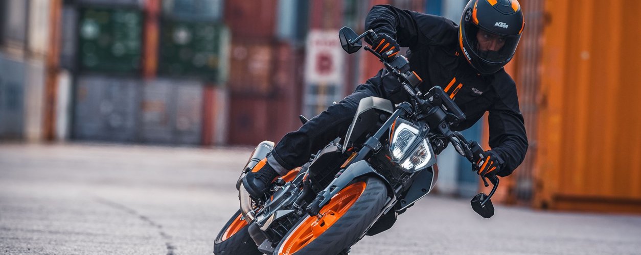 A moto tem ABS nas duas rodas com a opção "supermoto" - que permite escorregadas com a roda traseira -, suspensões da grife americana WP (14,2 cm de curso na frente e 15 cm de curso atrás), toda a iluminação com LEDs e um belo painel com tela de TFT colorida, cuja exibição das informações pode ser customizada pelo piloto e que ainda tem conectividade com smartphone pelo aplicativo KTM My Ride.