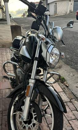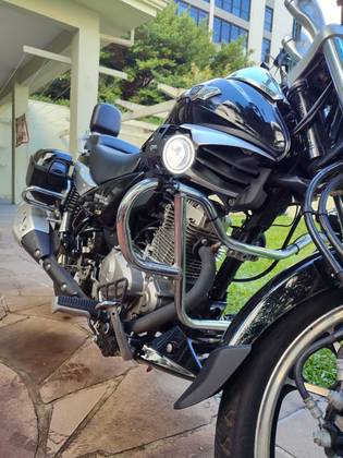 Na parte mecânica, a pequena custom tem motor monocilíndrico injetado e refrigerado a ar. São 149 cm³ que entregam 12,1 cv de potência e 1,1 kgfm de torque - números modestos, mas satisfatórios para o trânsito urbano.