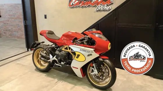 Esse conjunto pode não parecer tão forte, mas os números enganam: segundo a MV Agusta, a velocidade máxima da moto é de 240 km/h e a aceleração de zero a 100 km/h é feita em 3,7 segundos!
