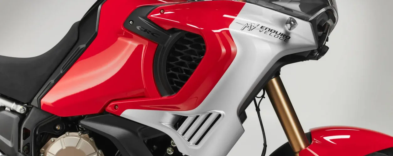 A bola da vez é a MV Agusta Enduro Veloce. É uma big trail, algo que a MV Agusta ainda não tinha em suas fileiras - até agora composta por modelos naked, esportivos e até uma crossover. Falando em crossover, a belíssima Enduro Veloce é uma big trail, porém antenada com os tempos atuais. Ou seja, e mais big do que trail, quase uma crossover também. E nem tão big assim, pois tem menos de 1000 cm³.