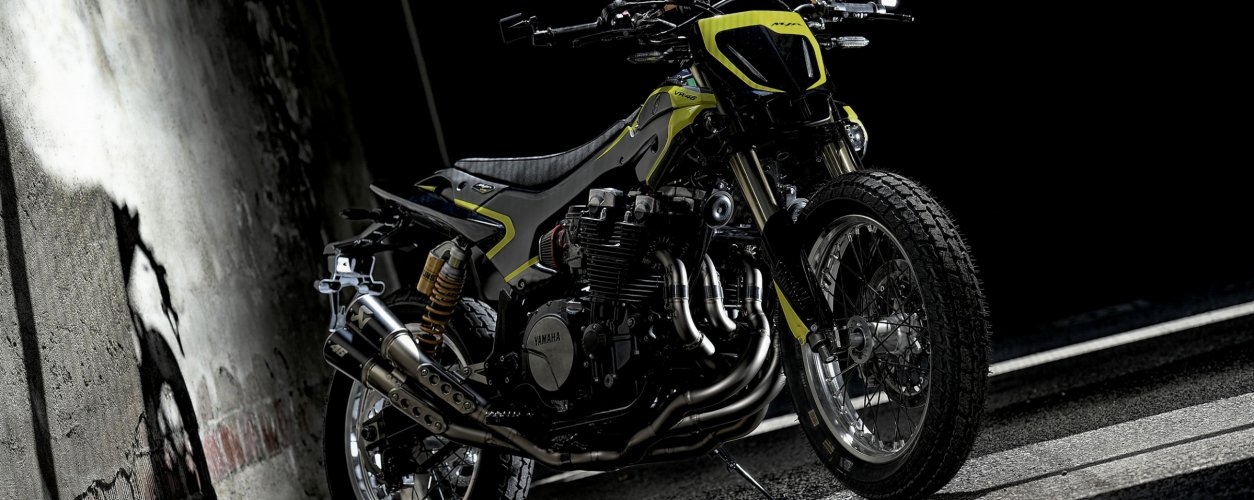 O talentoso designer substituiu o tanque e outras peças de aço da pesada XJR 1300 por uma esbelta roupagem de plástico no estilo enduro. O subquadro traseiro original foi trocado por um outro, feito de forma artesanal, e que permitisse a instalação de um banco estreito e fino, como nas motos off-road.
