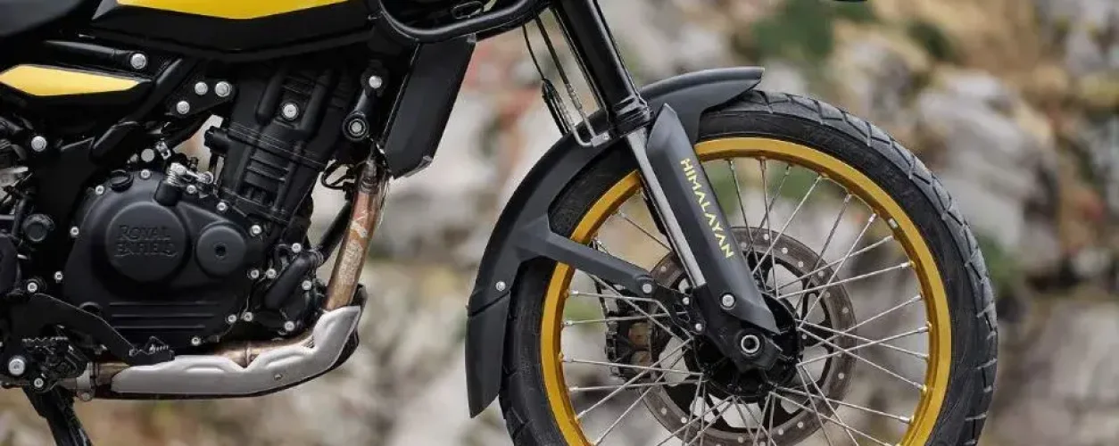Outro quitute da nova Himalayan 450 são as suspensões dianteiras, agora invertidas, com sistema SFF de funções (óleo de um lado, mola do outro) e fornecidas pela japonesa Showa. Antes, eram garfos convencionais e da própria Royal Enfield.
