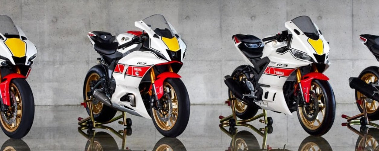 A linha 2022 das esportivas R1, R3 e R7 terá uma "roupa" especial. O motivo é a comemoração dos 60 anos de participação da Yamaha em grandes prêmios - as motos também terão o "sobrenome" World GP 60th Anniversary.