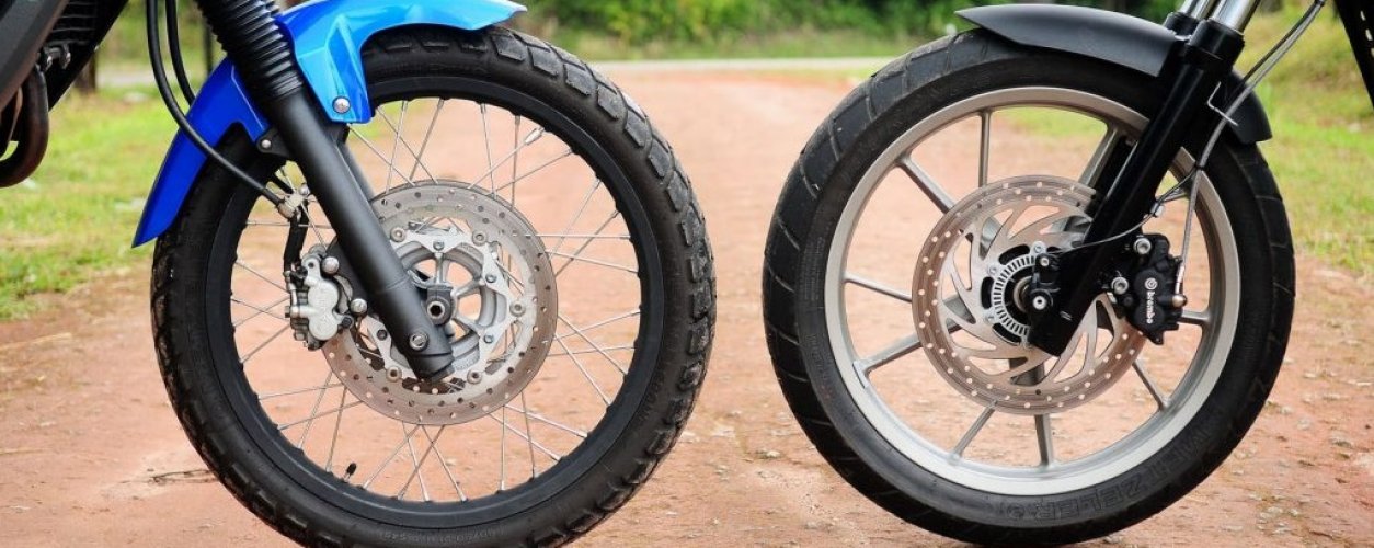 Roda raiada ou de liga leve? Qual a melhor? Depende da aplicação. Basicamente as rodas de liga leve são mais indicadas para motos que vão rodar por pisos bem asfaltados, e as raiadas são mais adequadas ao uso em trajetos com piso ruim, inclusive estradas de terra e trilhas.