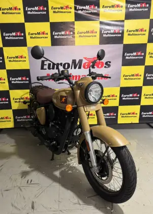 O pneu dianteiro da Classic é o mesmo 100/90 R19 da Meteor, mas o traseiro é diferente: 120/80 R18 na Classic e 140/70 R17 na Meteor. A Classic também é mais gordinha - pesa 195 quilos a seco, contra 191 quilos da Meteor.