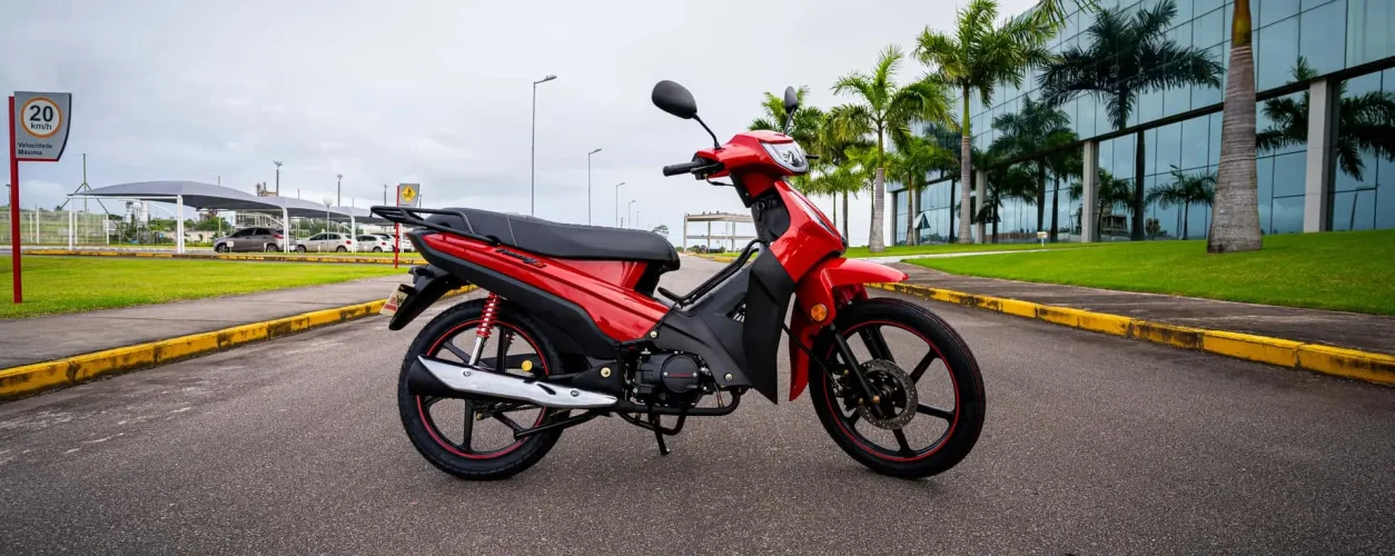 Além disso, o ciclomotor tem suspensões convencionais com garfos dianteiros e bichoque traseiro, freios com disco na frente e tambor atrás com assistência de sistema combinado CBS, e rodas de liga leve com aros de 17 polegadas