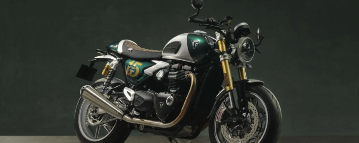 A Speed Twin 1200 Cafe Racer DGR Edition tem assento exclusivo confeccionado com tecido Harris Tweed feito artesanalmente, elementos visuais comemorativos "15 Years of Dapper" (que celebram os 15 anos do DGR), placa numerada e certificado de autenticidade.