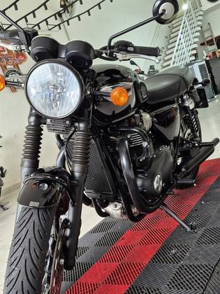 Pinturas especiais, aliás, são um recurso usado com frequência pela marca britânica. Não faz muito tempo, as clássicas ganharam a linha Gold Edition, que misturava as cores tradicionais com detalhes em dourado. Agora, a pintura especial tem um aspecto degradê que, dependendo da luz sobre a moto, faz parecer que parte do tanque está camuflado.