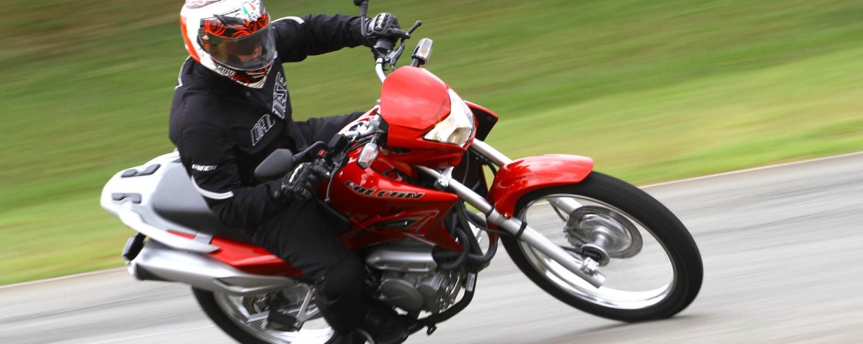 A Falcon usa rodas raiadas – 18’’ na traseira e 21’’ na dianteira – calçadas com pneus on-off que permitem incursões em quase todo tipo de estrada. O banco largo permite longas horas de pilotagem com relativo conforto. Até atingir 120 km/h o funcionamento é “liso”, mas acima disso o piloto passa a sentir a vibração transmitida pelo motor de um cilindro, 397,2 cm³, quatro válvulas e refrigeração a ar.