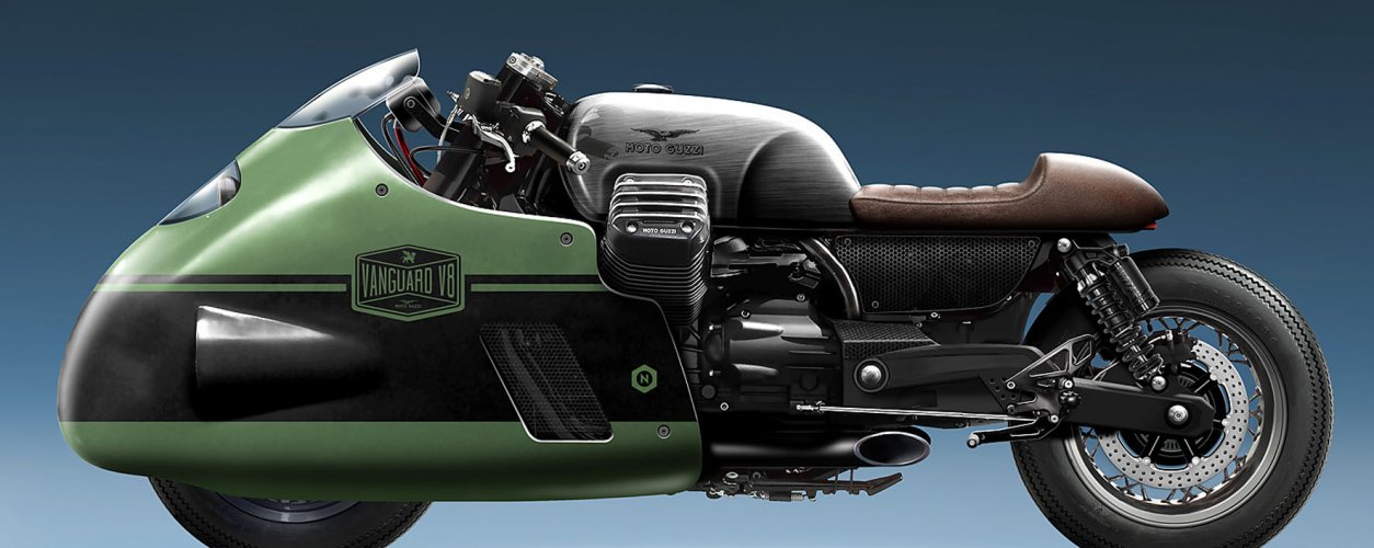 A Vanguard adotou novo assento, agora reto e em couro marrom, muito semelhante ao assento dos anos 50. A cor "Racing Green", com faixa preta horizontal, é uma clara homenagem a seu antepassado. O motor de dois cilindros de 1.400 cc é praticamente o original de Moto Guzzi Eldorado. Com uma posição de pilotagem mais agressiva, a "Vanguard V8 Racer" faz uma bela homenagem ao projeto do designer Giulio Cesare Carcano e dos arrojados engenheiros da marca italiana de Mandello del Lario. Como uma roupa, o motociclista precisa vestir a moto e aproveitar ao máximo o estilo de vida sobre duas rodas.