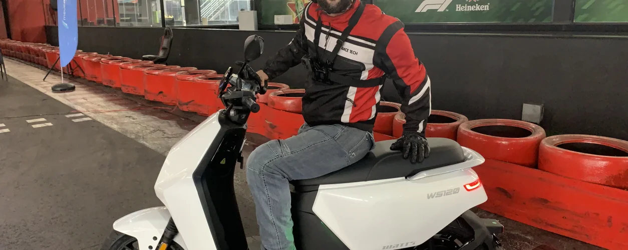 Nosso primeiro contato com a scooter elétrica aconteceu em circuito fechado. A W120 tem um conjunto com boa ergonomia – mesmo para quem tem 1,83 m de altura como eu – e bom equilíbrio entre desempenho do motor, suspensões e freios.