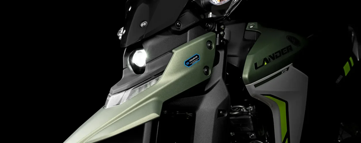 Como não poderia deixar de ser, a Lander agora tem farol com projetor de luz, que assim como na Crosser parece uma "boca de pato" aberta - mas aqui na Lander ficou menos exótico. O para-lama dianteiro ficou mais curto, o tanque ficou mais musculoso e as abas laterais ficaram menores. A moto também passa a ter luzes de rodagem diurnas (DRLs).