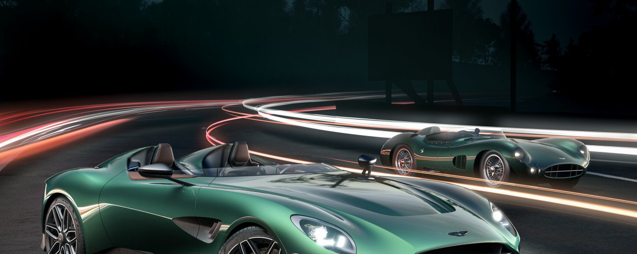O conceito de cockpit aberto também apresenta uma carroceria totalmente nova em fibra de carbono, juntamente com uma nova grade frontal que dá um novo toque ao visual vintage do DBR1 e DB3S.