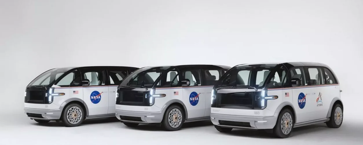 As três unidades do monovolume de 21 janelas - que podem até lembrar a clássica Kombi 23 - tiveram seu projeto modificado com base nos pedidos da própria NASA. Segundo comunicado da Canoo, a agência participou ativamente da construção do modelo, tanto na questão estrutural quanto estética.