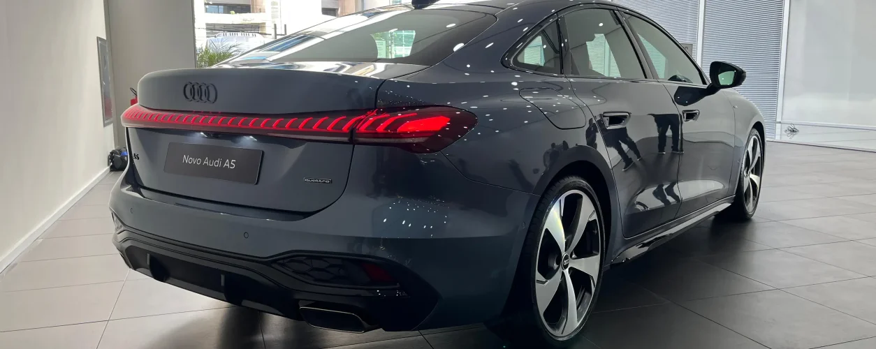 Embora não sejam concorrentes diretos, há acúmulo de lançamentos de produtos nacionais e importados como nunca. O A5 substitui o A4, tem nova arquitetura e cresce nesta geração: comprimento, 4,82 m; entre-eixos, 2,89 m; largura, 1,86 m, altura, 1,41m; e bom porta-malas de 417 litros.
