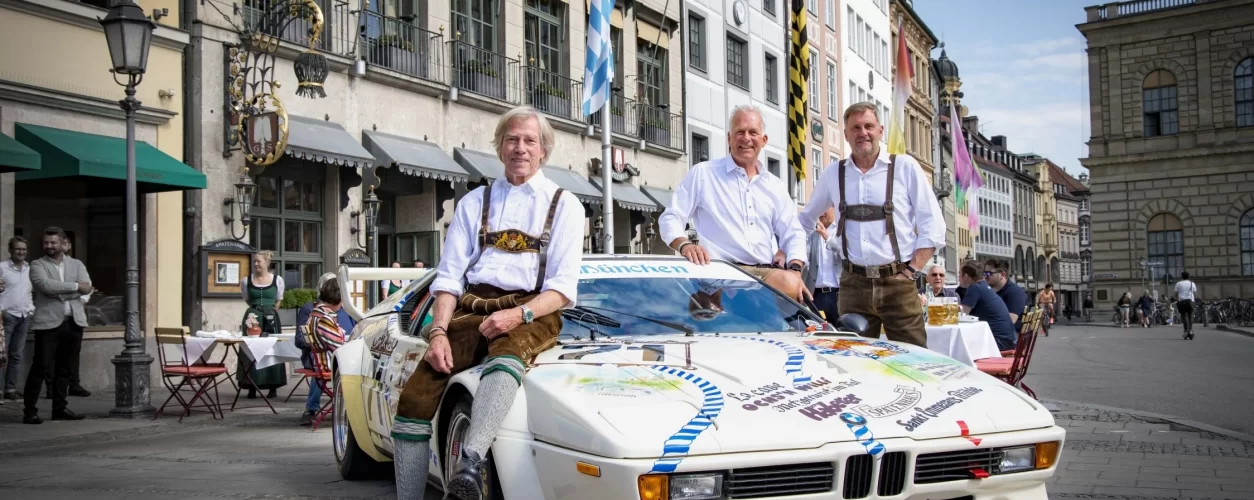 A aparição do trio, na última semana, na porta do Spatenhaus, em Munique, na Alemanha, ao lado do carro pintado nas cores clássicas "Münchener Wirtshoys", faz parte da prévia das corridas, da mesma forma que era feita na década de 80.