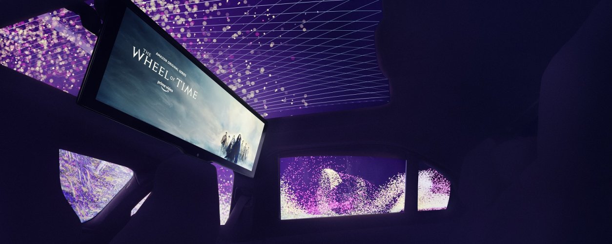 Composto principalmente por uma enorme tela com 31 polegadas de tamanho e até 8K de resolução, o sistema também controla algumas funções do veículo, como o desligamento das luzes internas e o movimento de cortinas elétricas. Assim, efetivamente, proporciona aos passageiros um entretenimento sem distrações com fatores externos.
