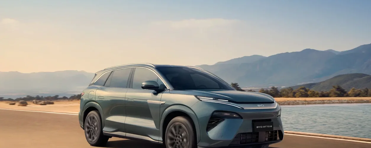 O BYD Atto 8 é um SUV imponente, com capacidade para sete pessoas. Estamos falando de 5,04 metros de comprimento, 2,95 metros de distância entre-eixos, 1,99 metro de largura e 1,76 metro de altura. Na configuração para sete ocupantes, o porta-malas leva até 270 litros, mas com a segunda e terceira fileiras de bancos rebatidas, o espaço salta para mais de 1.200 litros.
