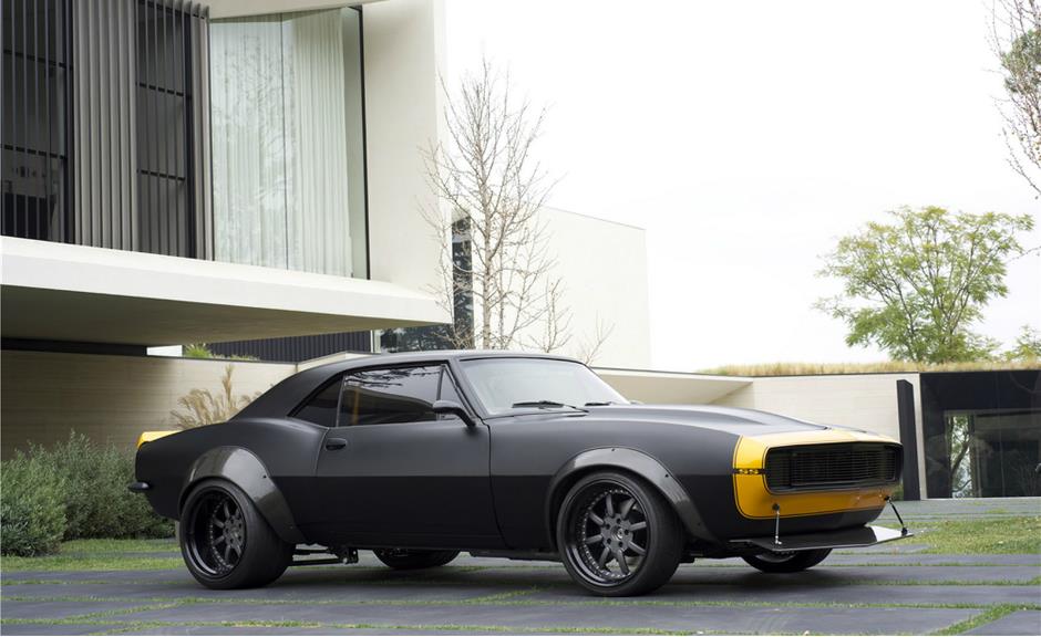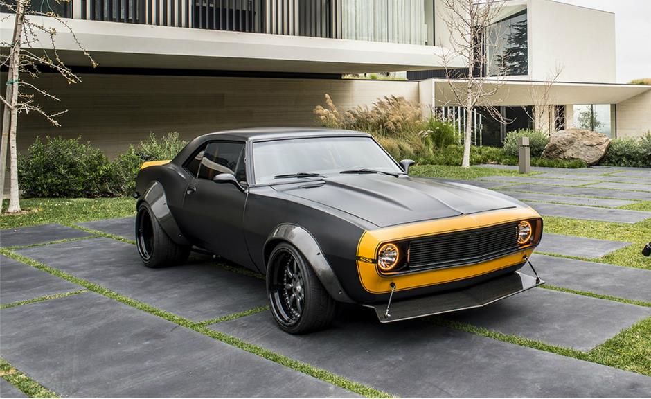 O Camaro é pintado em preto fosco com carroceria marcada pelos para-lamas alargados, rodas mais largas ainda, o enorme spoiler dianteiro e adesivos que remetem ao filme. O motor é um V8 da GM sem potência especificada. A mecânica ainda é um mistério, mas o mais esperado é que ele carrege um V8 LS1 de 5.7 litros, junto com câmbio manual Tremec T56.