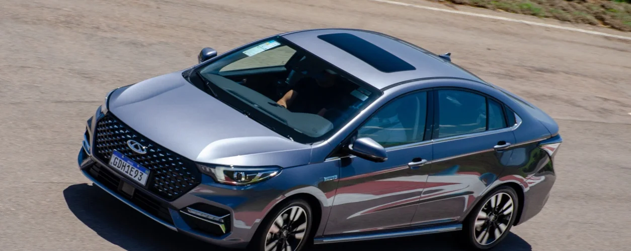 Tem praticamente a mesma cara do sedã a combustão que era feito em Jacareí (SP) e foi lançado em 2021. Mas o híbrido é trazido da China, desde que a Caoa Chery decidiu interromper a produção de veículos na fábrica do interior paulista.