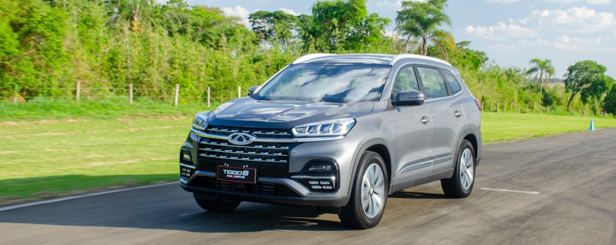 A motorização segue a mesma de antes: o Caoa Chery Tiggo 8 é movido por um motor quatro cilindros 1.6 com turbo e injeção direta, que rende 187 cv de potência e 28 kgf.m de torque. O câmbio é automatizado com sete marchas e dupla embreagem, e a tração é apenas dianteira.