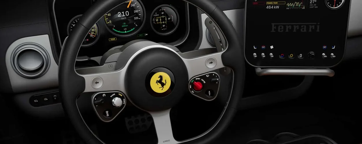 O primeiro carro elétrico da Ferrari tem nome e imagens! A empresa revelou recentemente qual será a nomenclatura e também fotos da cabine do primeiro veículo totalmente elétrico de sua história.