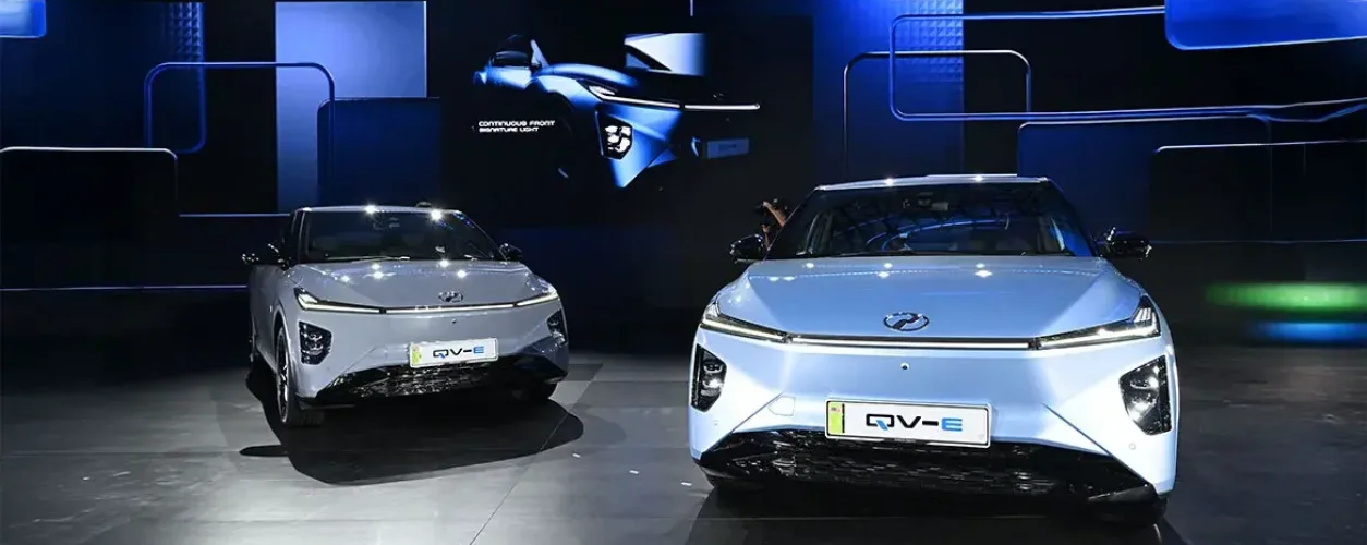- O QV-E é um hatch compacto com motor de 204 cv de potência e que roda mais de 440 quilômetros com uma carga;